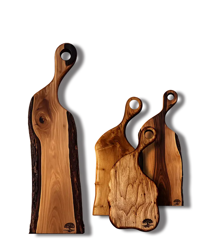 Nos planches sont garanties à vie. Façonnées à la main dans des bois nobles, elles allient robustesse, caractère et authenticité pour vous accompagner au quotidien.