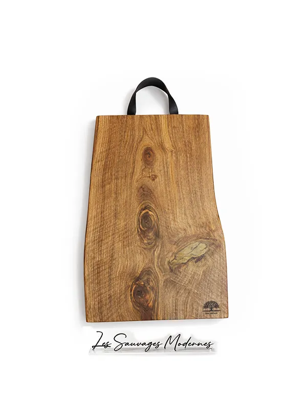 Ses deux côtés laissés sauvages conservent l’âme brute du bois, tandis que ses nœuds apparents viennent raconter une histoire marquée par le temps et la nature.