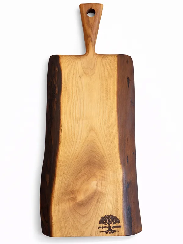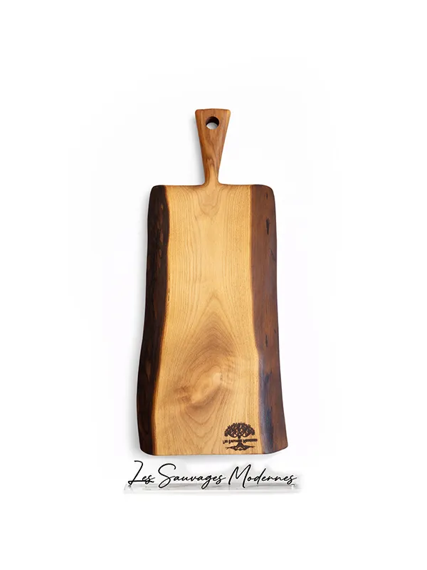 Spark est une pièce de contraste, née d’un noyer américain d’exception. Ses teintes profondes, presque sombres sur les bords, viennent encadrer un cœur plus clair, créant un jeu naturel de lumière et de matière.